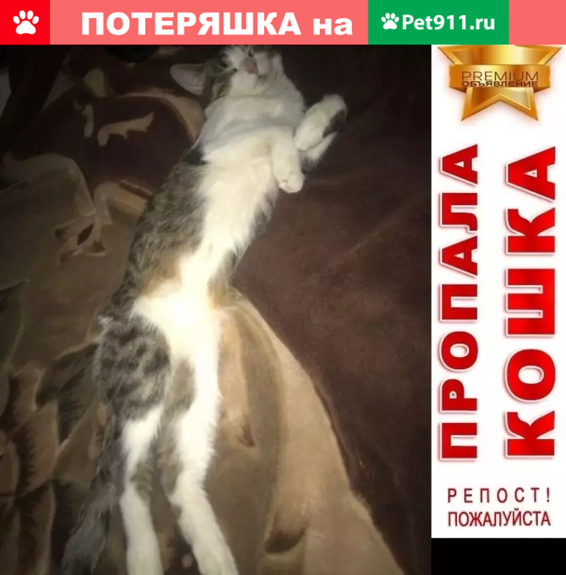Потерялась кошка! Кличка Маруся, возраст 7 ме...