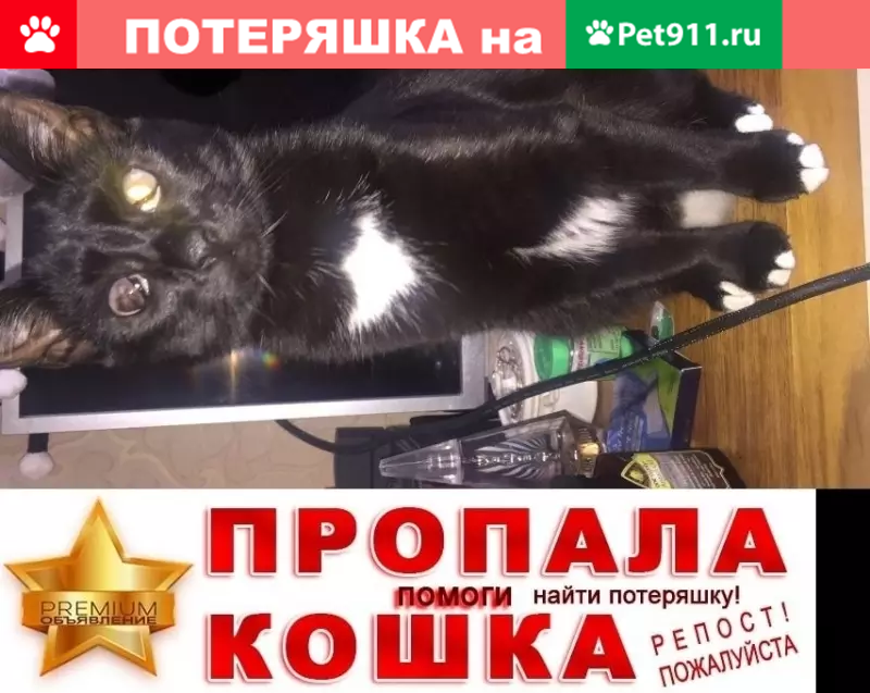 Пропала черно-белая кошка на у...