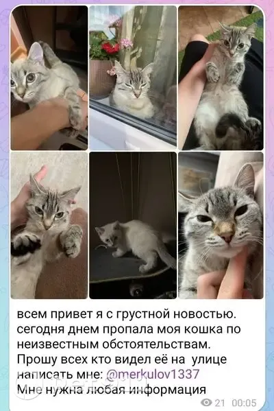 Пропала кошка, Львовская ул. 4...