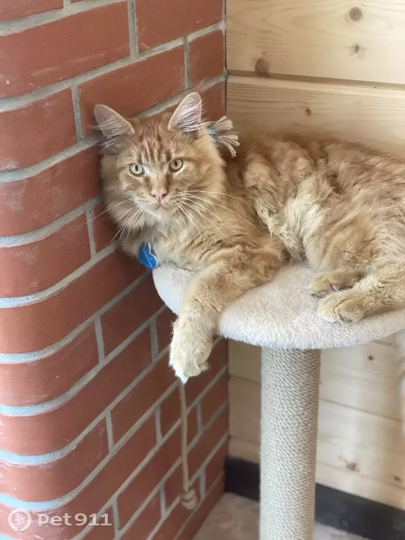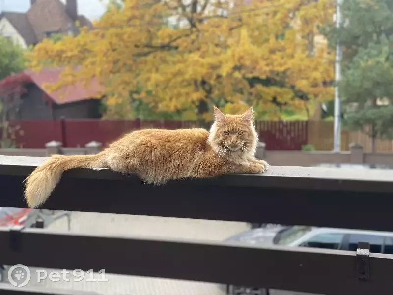 Кошки потеряшки, Санкт-Петербург, фото: Потеряшка кот Базилио на ул. В. Шишкова 28к.2, рыжий Мей кун с голубым ошейником