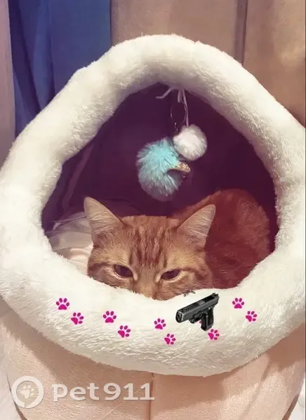 Окрас рыжий с белыми полосками. Выпрыгнул из...