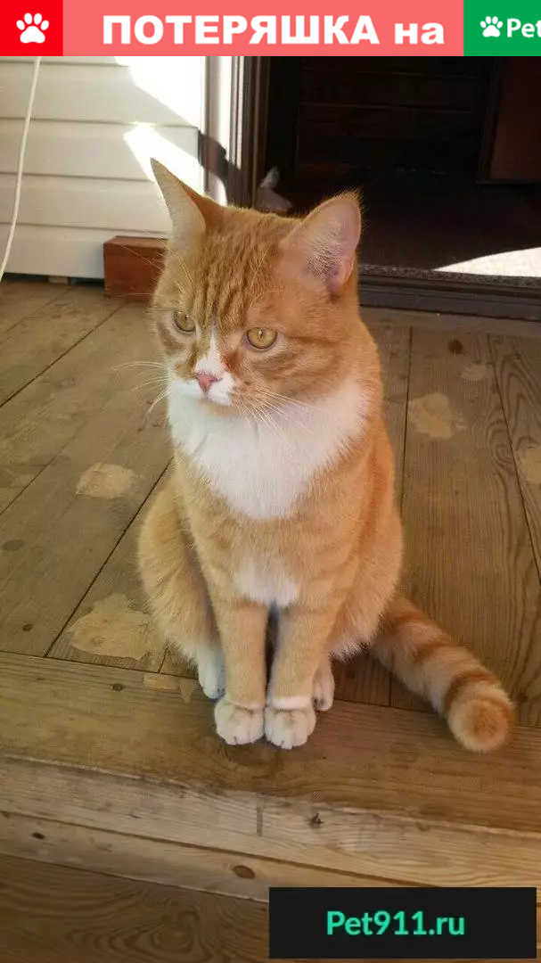 Потерялся взрослый, рыжий кот с синим ошейник...