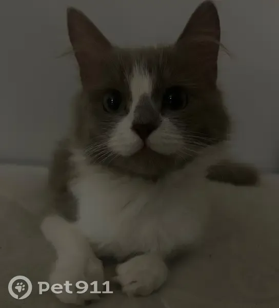 Серо-белый кот, ласковый ,отзывается на Тёма