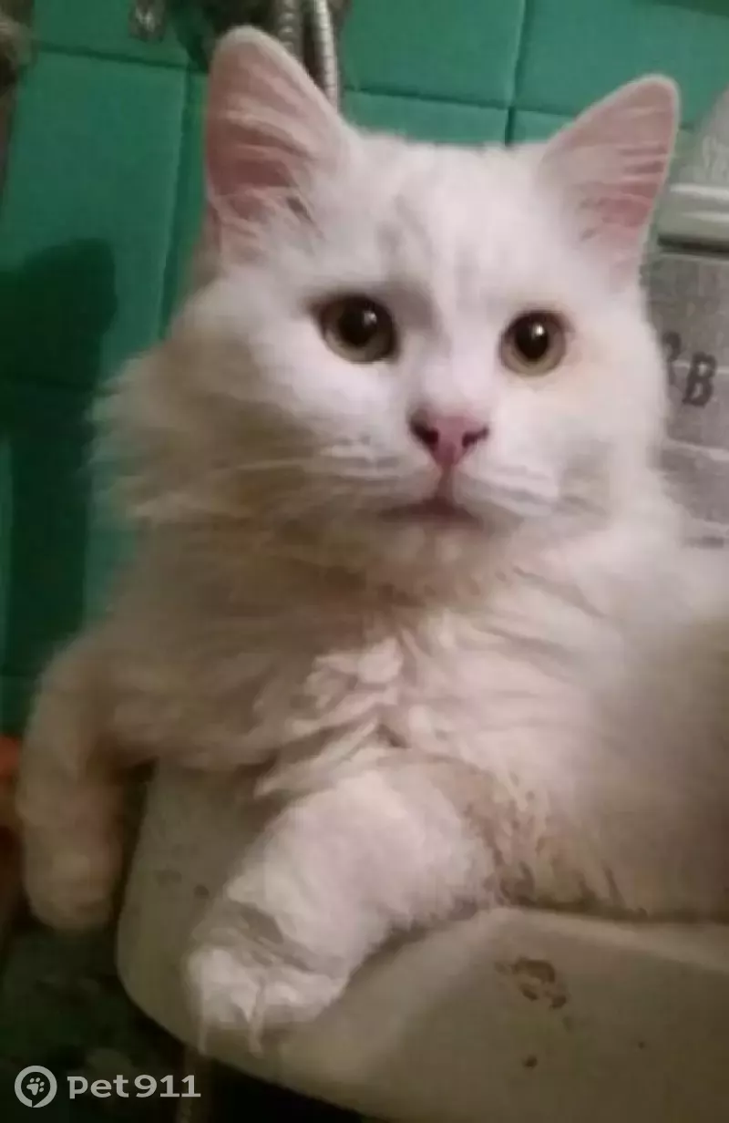 Чисто-белый длинношёрстный кот, кличка Макс,...