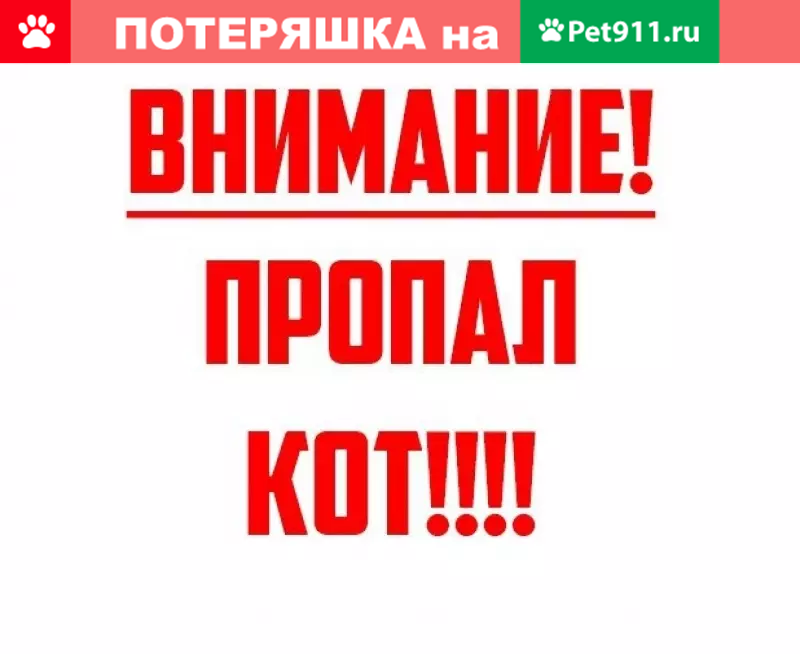 ****ВНИМАНИЕ!!! ПОТЕРЯШКА!!!**** Пропал кот....