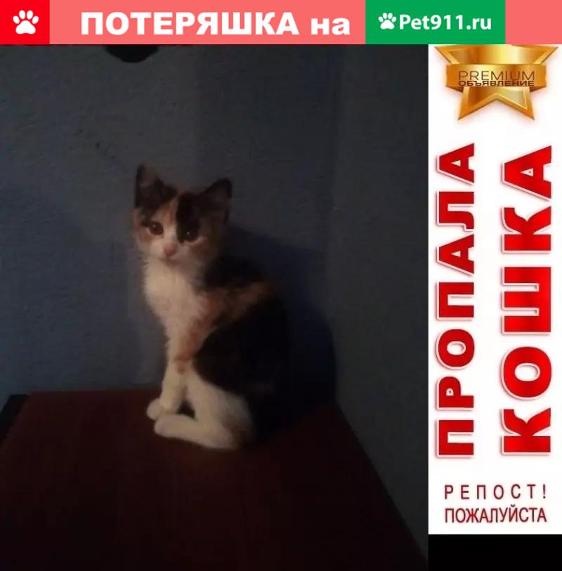 Пропала кошечка,трёх- цветная (рыжий с чёрным...