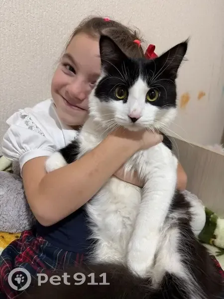 Кот обычный, пушистый хвост, окрас черно- бел...