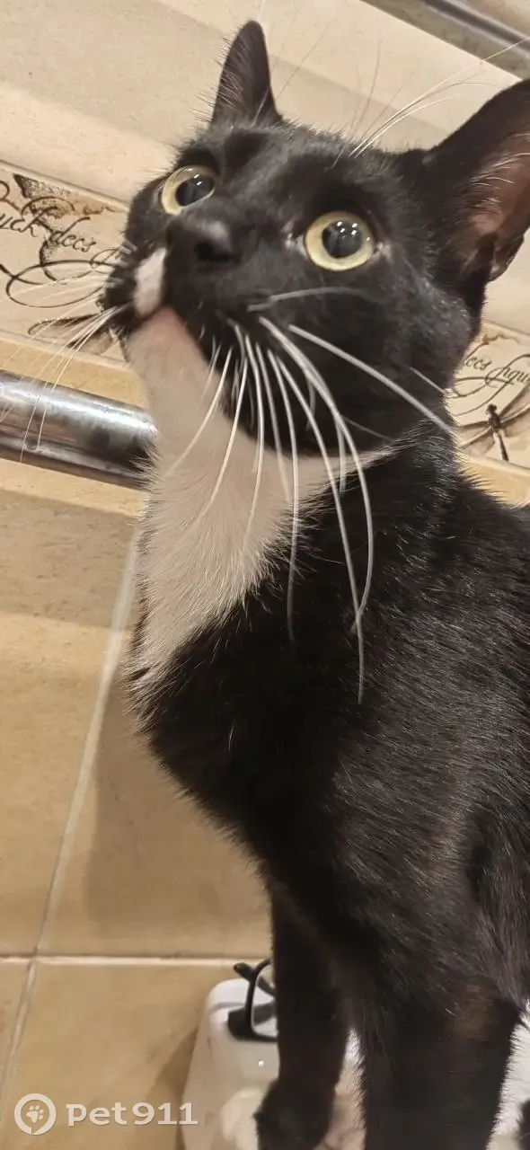 Кошки потеряшки, Санкт-Петербург, фото: Потеряшка кошка, Мужской пол, черный с белыми пятнами, ул. Пионерстроя, 10, СПб