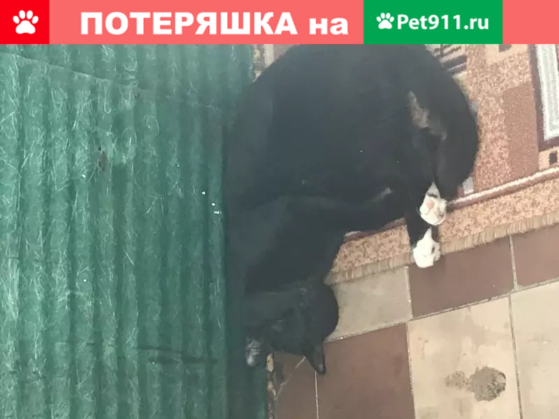 Пропал чёрный кот,задние лапки белые,возраст-...
