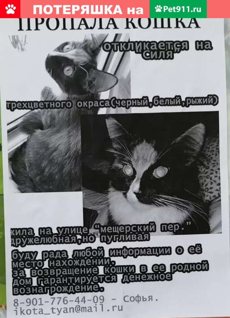 Пропала кошка в Москве, звонит...