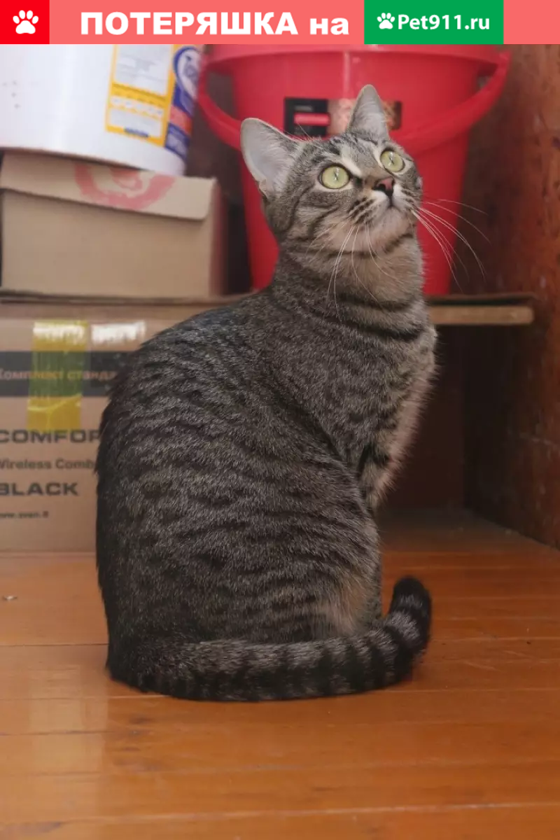 Кошки потеряшки, Киров, фото: Потеряшка кошка в Кирове: серый полосатый окрас, район Октябрьского проспекта и ул. Труда