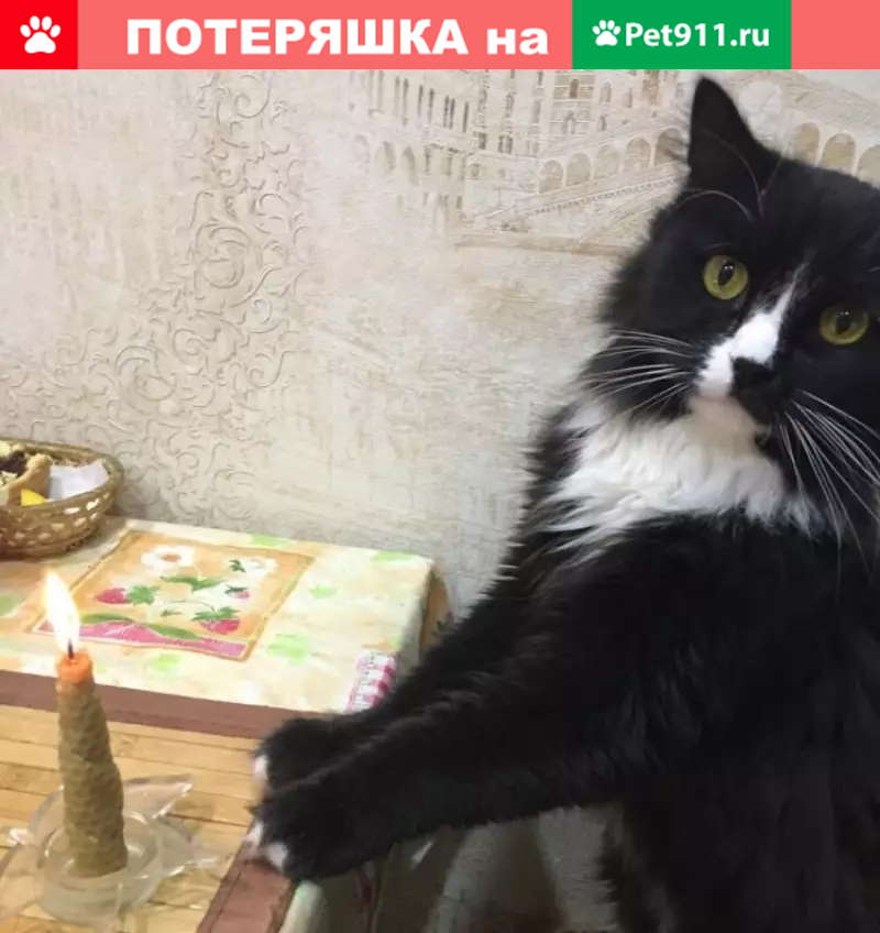 ПОТЕРЯЛСЯ КОТ! Черный, пушистый, с белой ман...