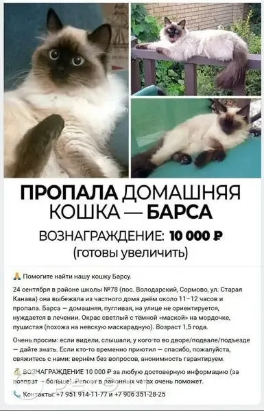 Пропала кошка! В ночь с 28 на 29.09.2025. От...