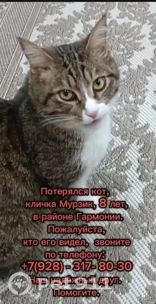 Пропал кот по кличке Муиз, на кличку отзывает...