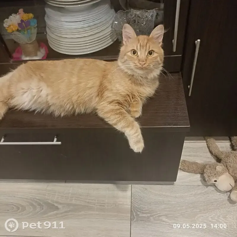 Ярко рыжий молодой, пушистый котик. Очень под...
