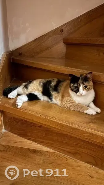 Трехцветная рыже-бело-черная. Ласковая. На ше...