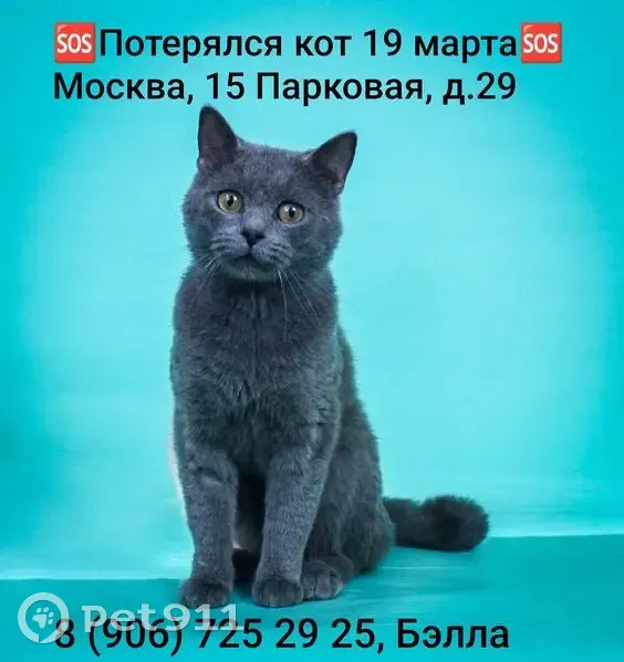 Кошки потеряшки, Москва, фото: Потеряшка кот, 15-я Парковая улица, 29 к2, Москва - метис британца голубого окраса