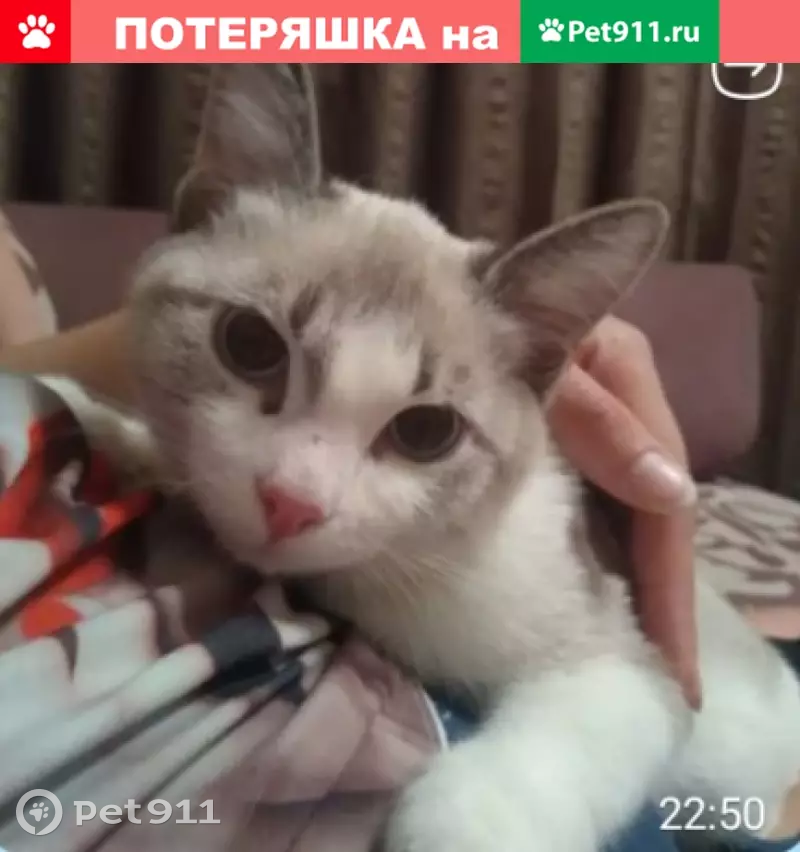 Пропала кошка сама белая с мордой полосатого...