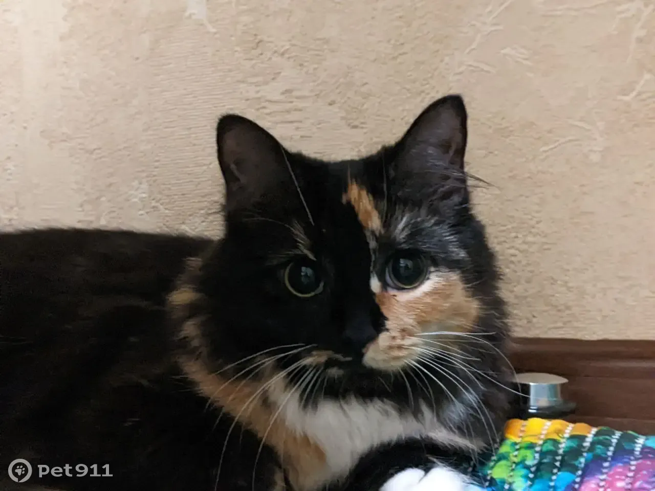 Кошка, небольшого размера, трёхцветная. Выпал...