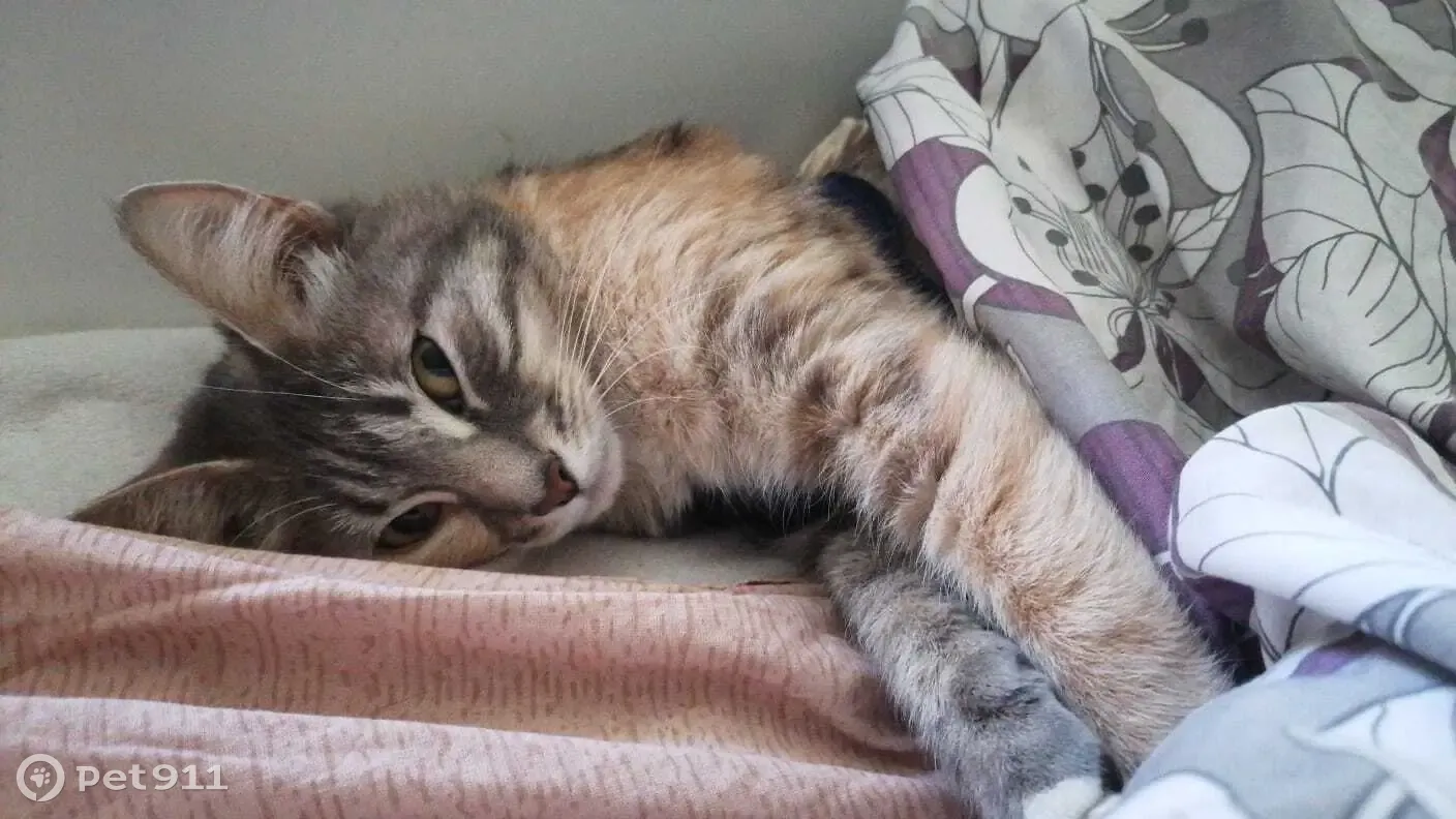 Кошки потеряшки, Москва, фото: Потеряшка кошка! Р-н ул. Адмирала Макарова, Мираторг. КИСА, серая с рыжими подпалинами. Вознаграждение. Тел. 89258687779. Москва, Ленинградское ш., 20 к1.