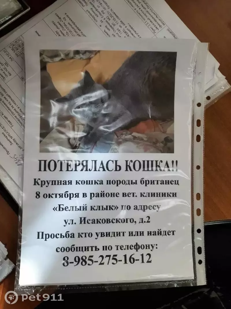 Кошки потеряшки, Москва, фото: Потеряшка британская кошка Диана напротив клиники Белый Клык, Москва