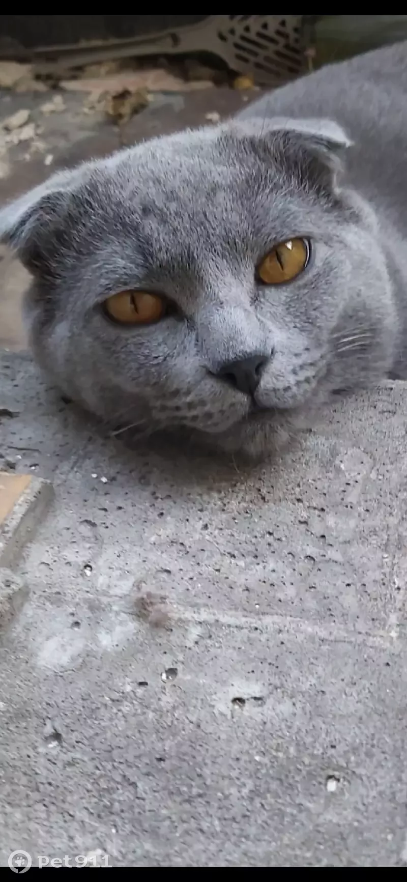 Серый вислоухий кот , дымчатый .