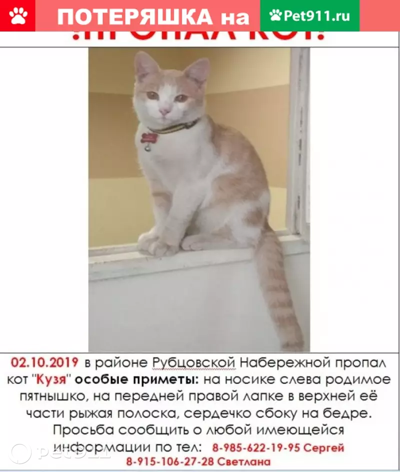 Медведково! Пропал Кот! Томсон! Пуглив и може...