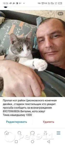 Кот зовут Тима пепельный цвет улица Циолковск...