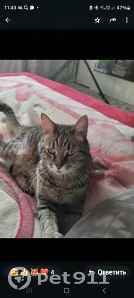 Пропала кошка, 1 год. Полосатая. Весит 3кг,...