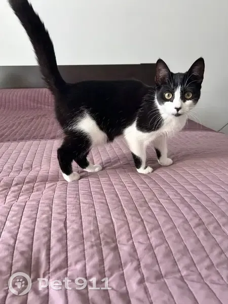 Кошка, 11 месяцев, окрас черно-белый. Выскочи...