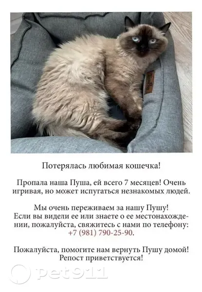 Пропавшие коты и кошки (потеряшки) в Мурино