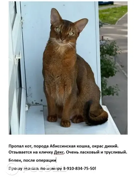 Кошки потеряшки, Москва, фото: Потеряшка абиссинская кошка, пр. 6191, Москва