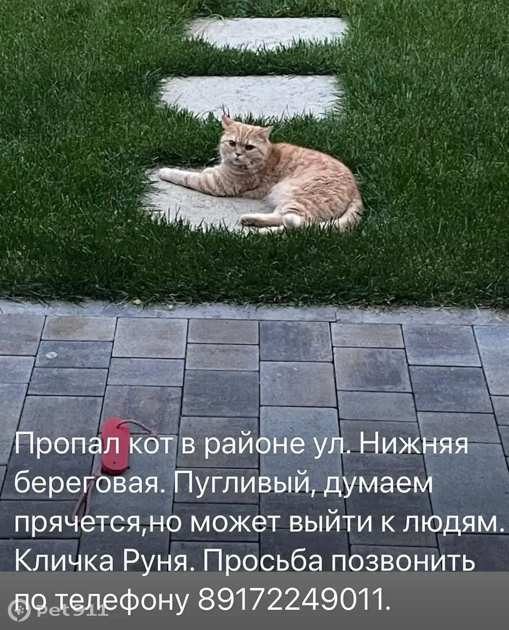 Кот рыжего цвета по имени Руня, очень пугливы...