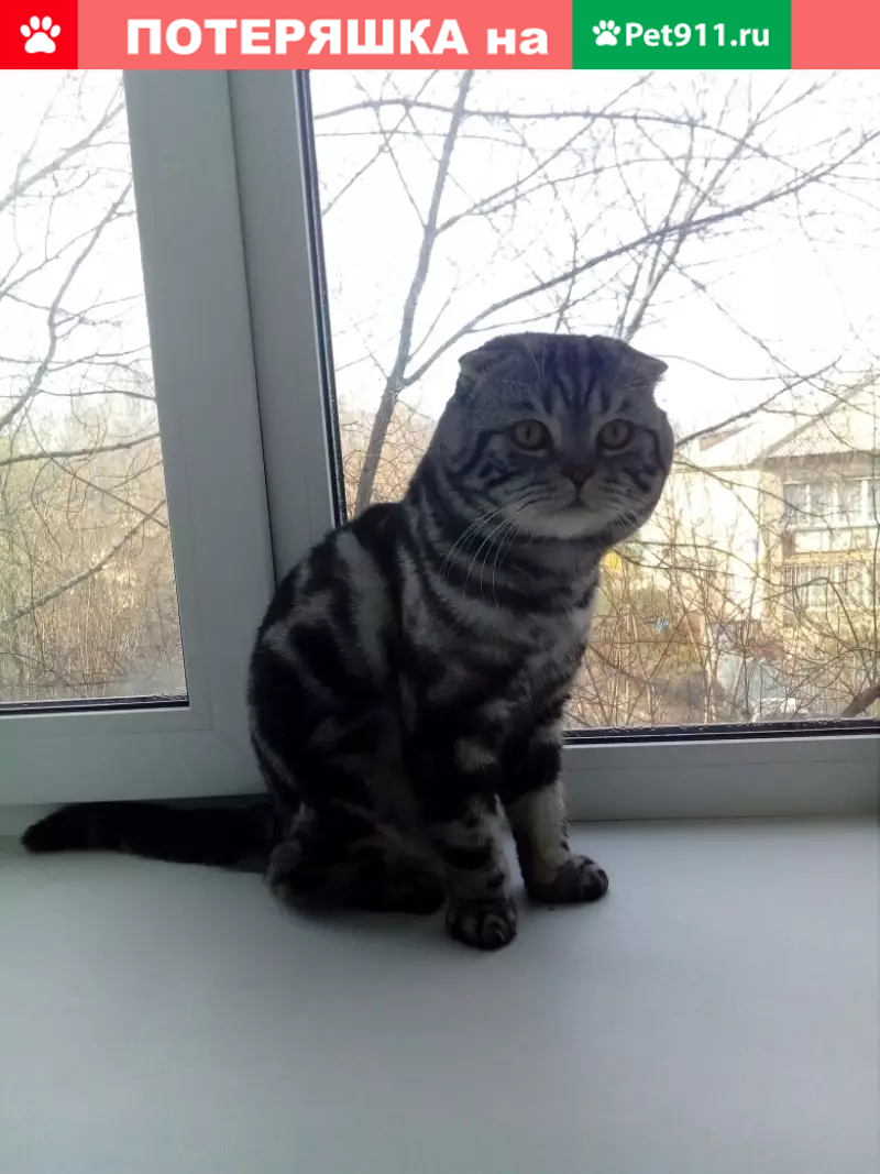 Пропал кот,шотландский,окрас мрамор на белом,...
