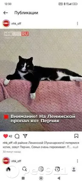 Потерялся кот. В районе дома 32 по улице Нахи...