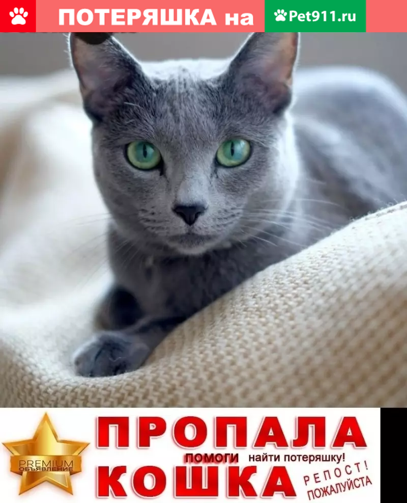 Пропала кошка! Выпала из окна 8 этажа на улиц...