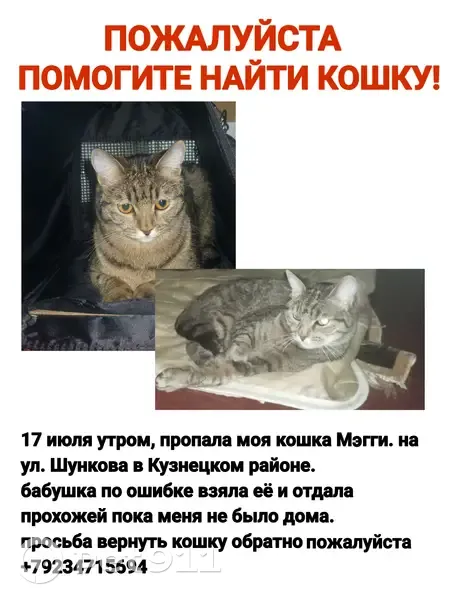 Пропавшие коты и кошки (потеряшки) в Новокузнецке