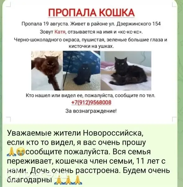 Смотрите также: Пропавшие коты и кошки (Потеряшки) в Краснодаре