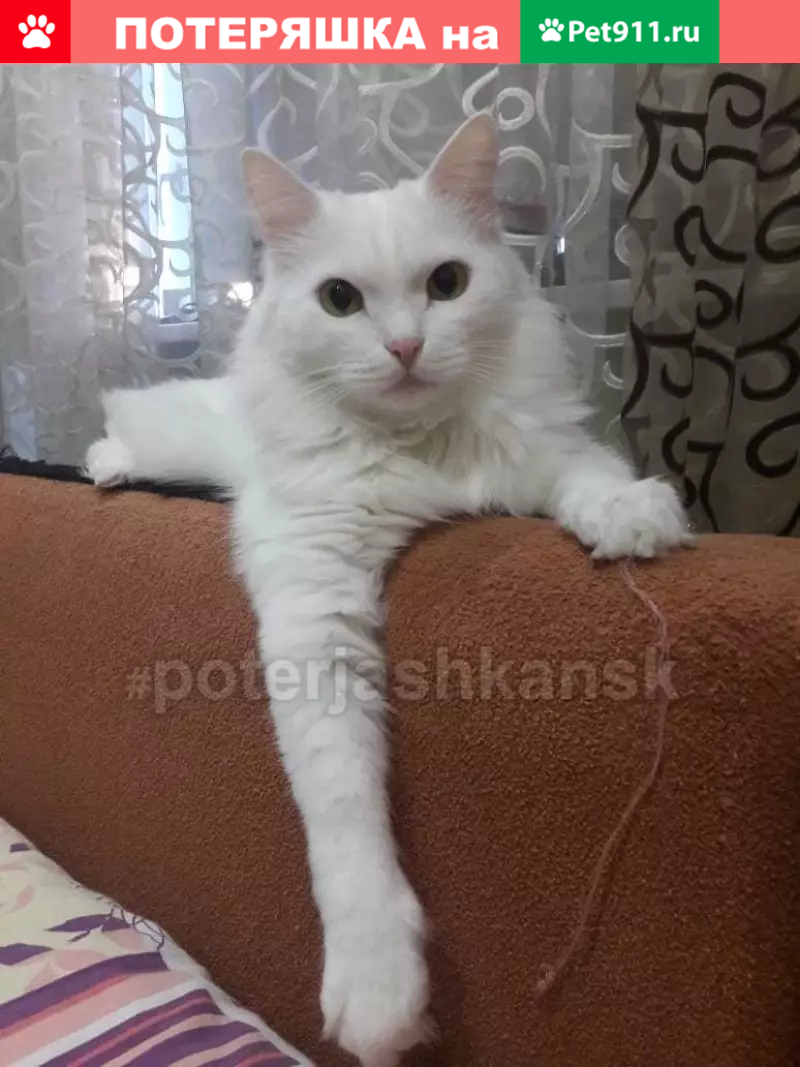 ПРОПАЛ КОТ зовут Фима, белая длина шерсть, же...