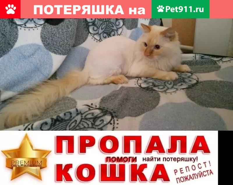 Потерялась белая кошка. Зовут Мишель. На Родн...