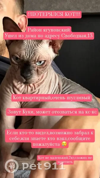 Сфинкс,кот квартирный,шугливый. Вышел из дома...
