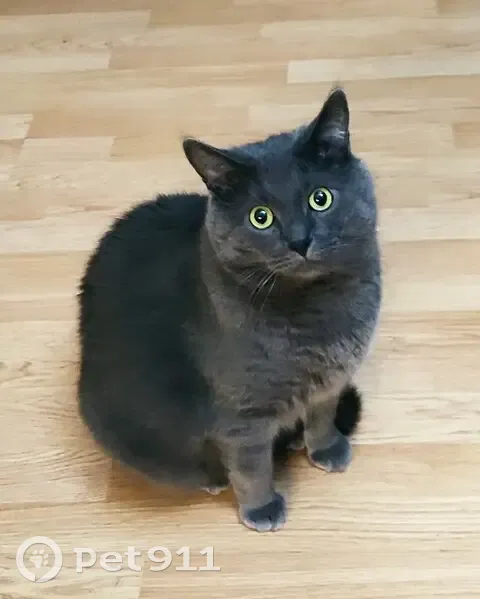 Кот, тёмно-серый окрас с зелёными глазами.Син...