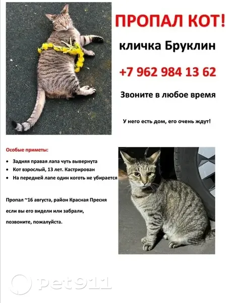 Коту 6 лет. Кастрирован. Ушел гулять (как обы...