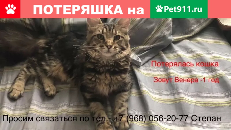 Потерялась кошка породы мейн кун!Зовут Венера...