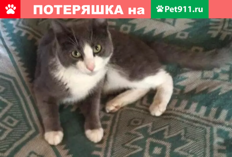 Потерялся кот, зовут Пушок. Серого цвета с бе...