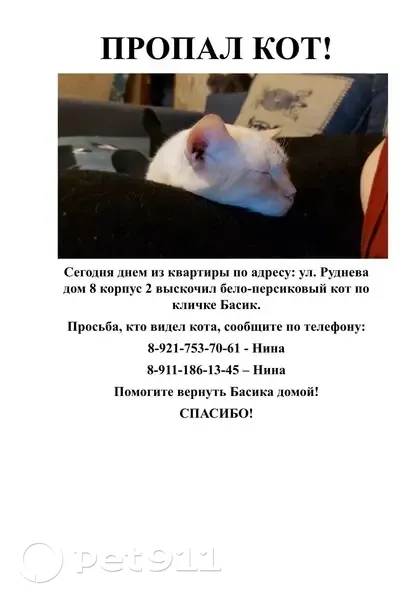 Пропал кот, Санкт-Петербург -...