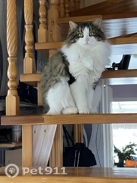 Очень пушистый кот, серо- белый окрас. Шикарн...