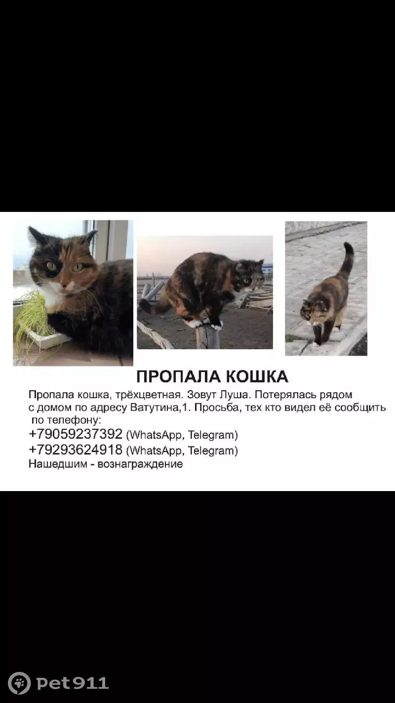 Пропала кошка на улице Ватутин...