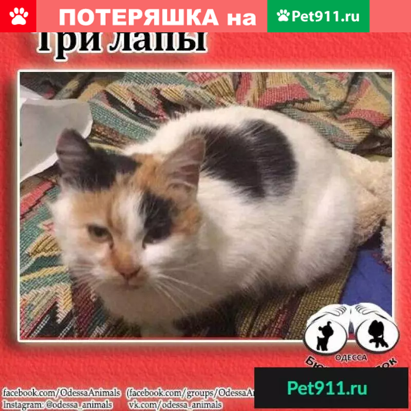 Кошки потеряшки, Кошки, фото: Потеряшка трехцветная кошка в Черноморске, Одесская обл. 08.10.18.