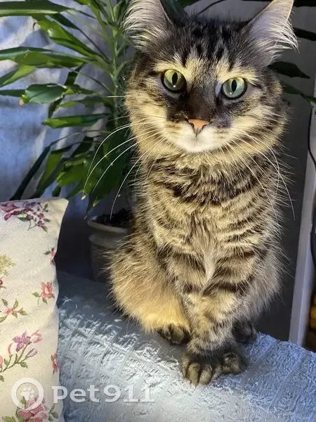Полосатая, пушистая, зеленые глаза, к чужим н...